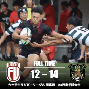 11月14日(土)に福岡大学グラウンドで行われた九州共立大学戦は、17-28で本校が九州共立大学に敗れました。また、本日の試合を持ちまして、2020年の九州学生Ⅰ部リーグの全日程は終了となります。たくさんのご支援・ご声援ありがとうございました!