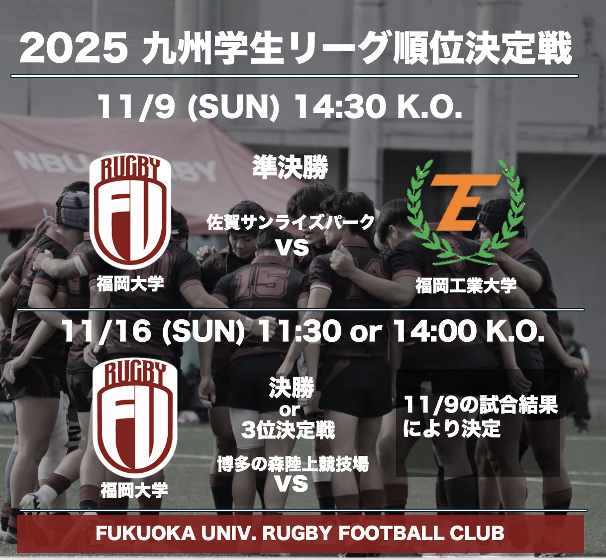11/9 (日)福岡工業大学さんとの一戦になります!